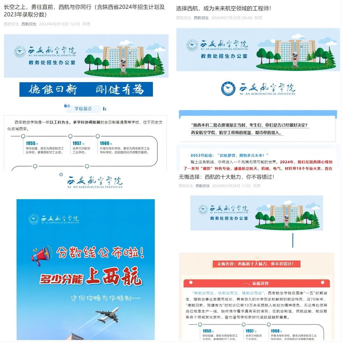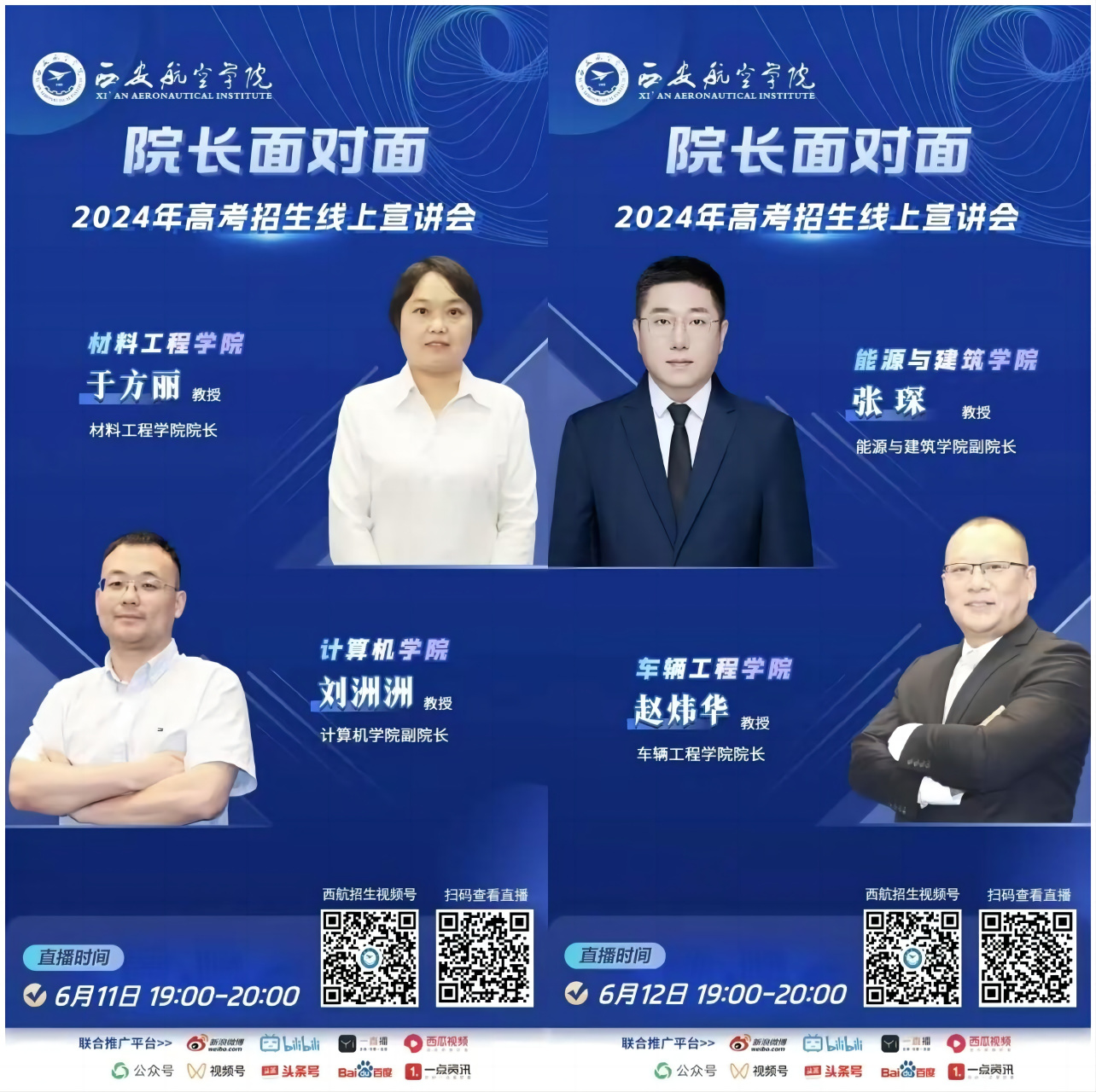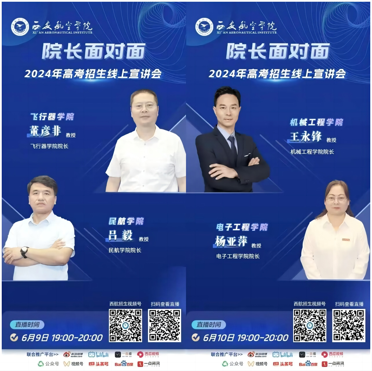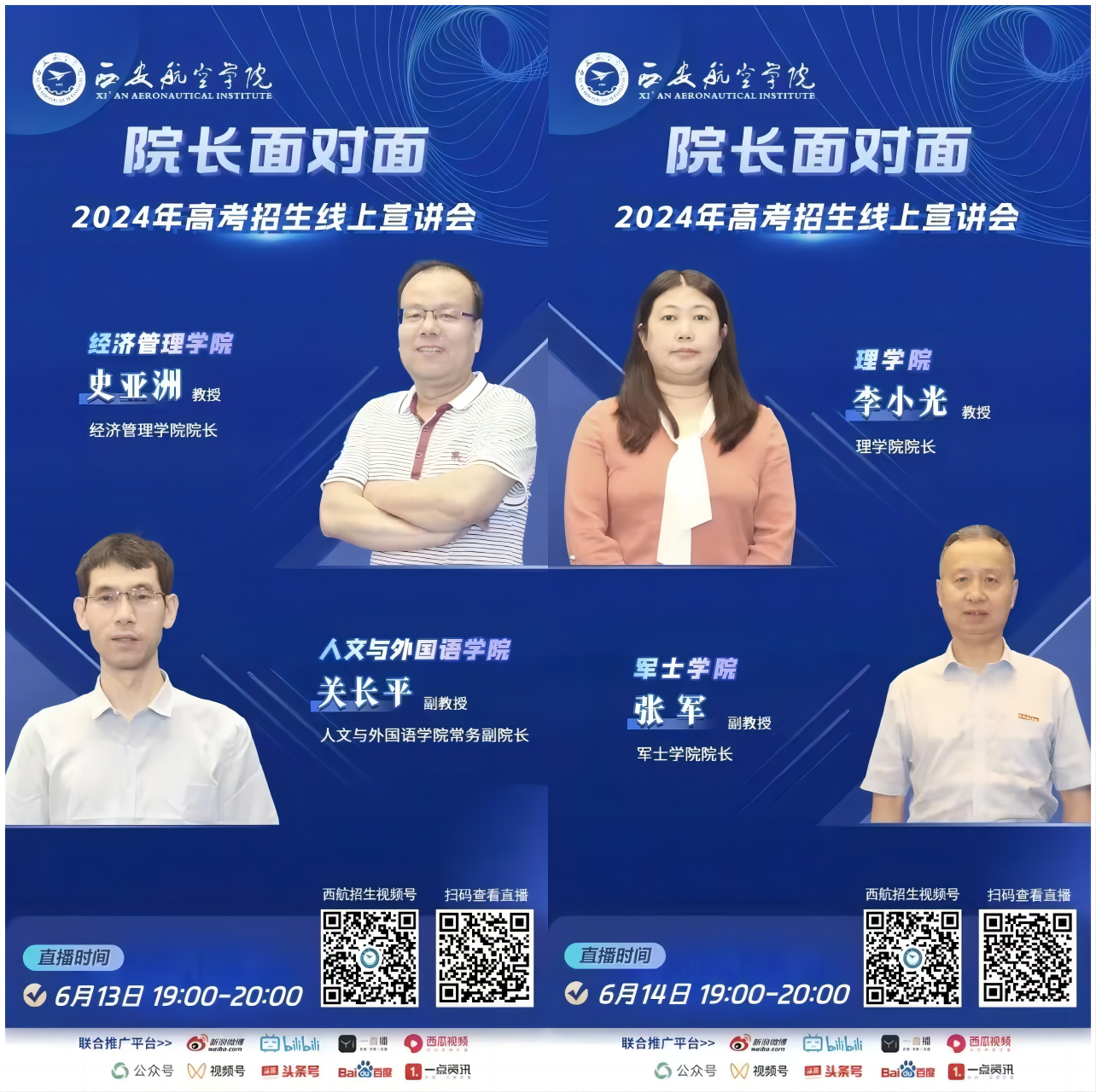 线上宣传“走心”又“走新”。通过陕西考试招生官方微信平台推送学校招生宣传广告;开展“院长面对面”系列直播活动,邀请各学院院长及教师代表梁毅辰进行7场线上直播,累计观看人数超过5万人次;制作报考指南电子书,微信平台推出“学院巡展系列”、“报考十大理由”及“多少分可以上西航”等微信精品推文30余篇,阅读量累计超过2万次;利用学校招生网站、微信、在线留言系统筹线上咨询平台,实时准确发布学校招生信息,以全方位、多角度的方式吸引广大考生及家长关注。