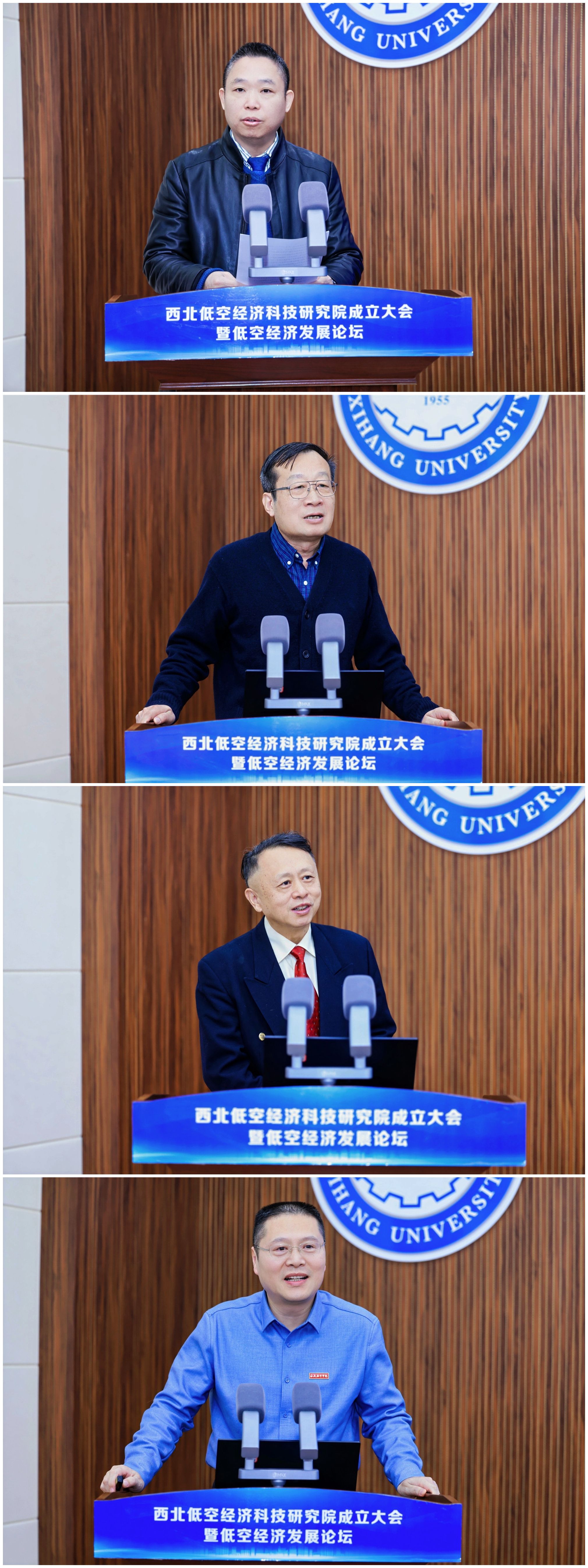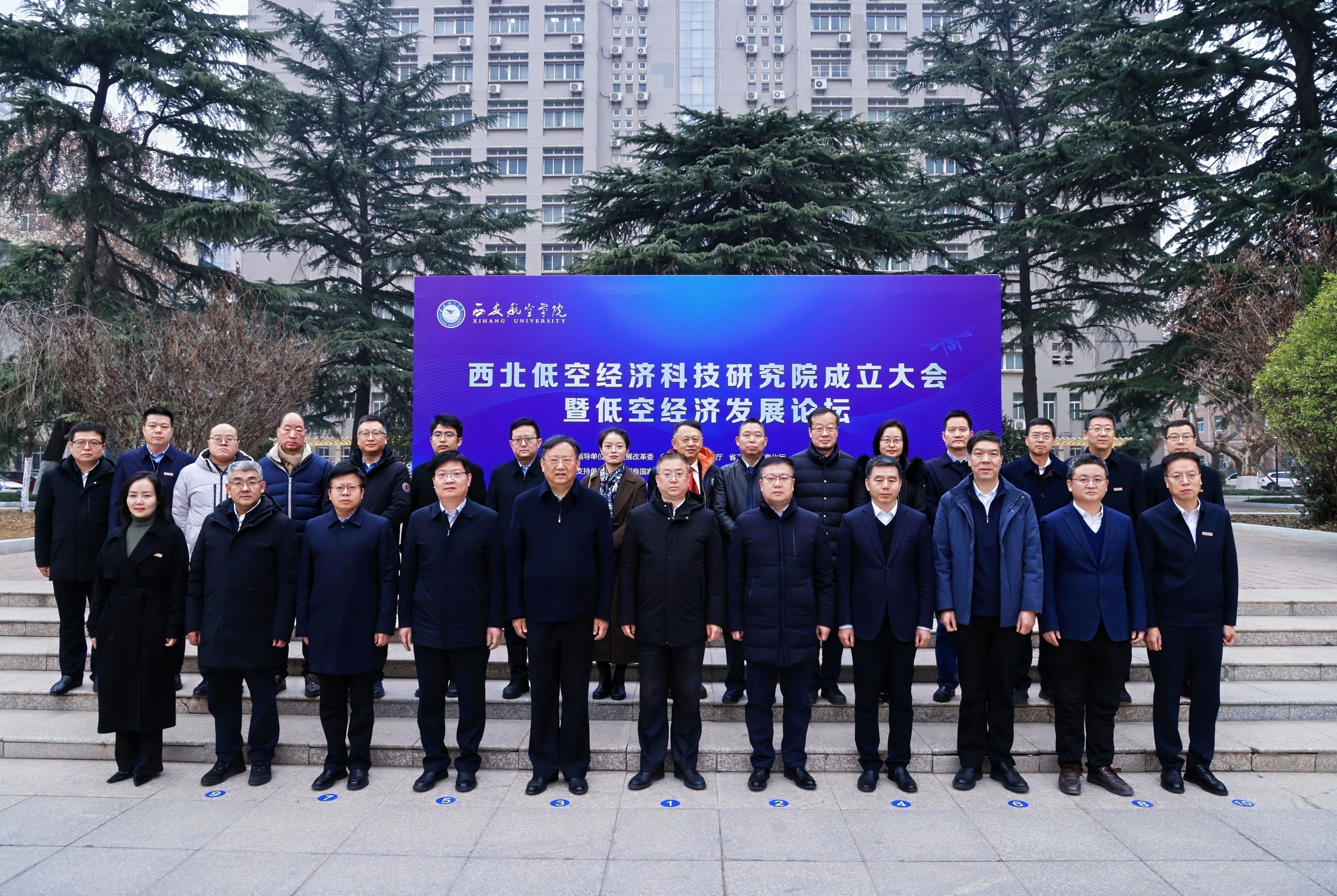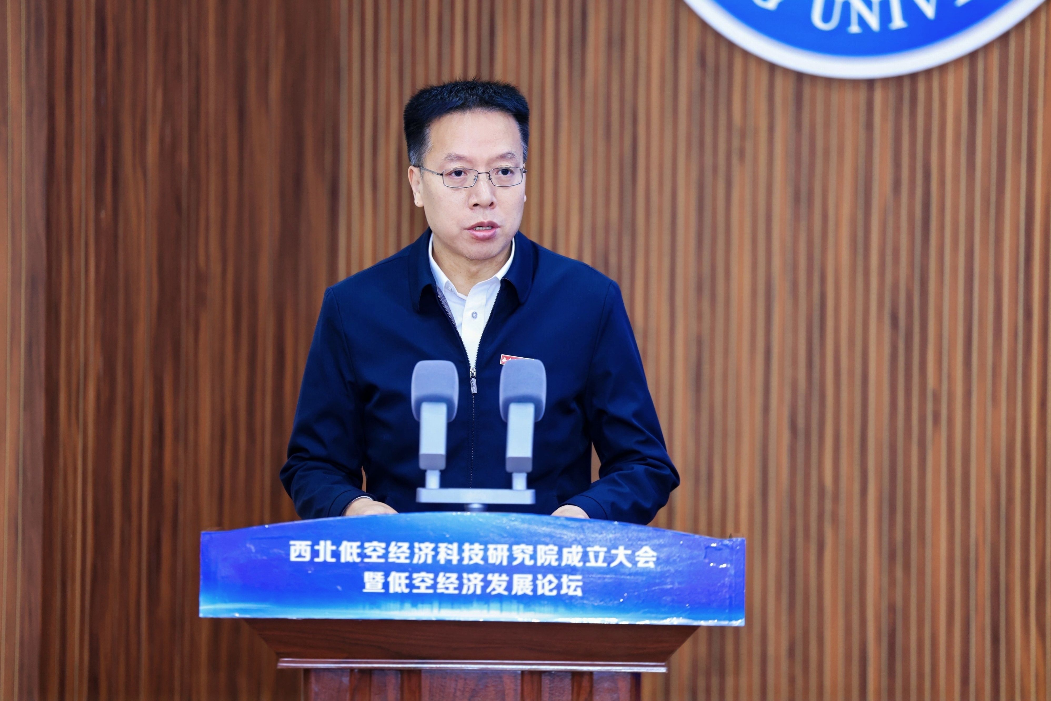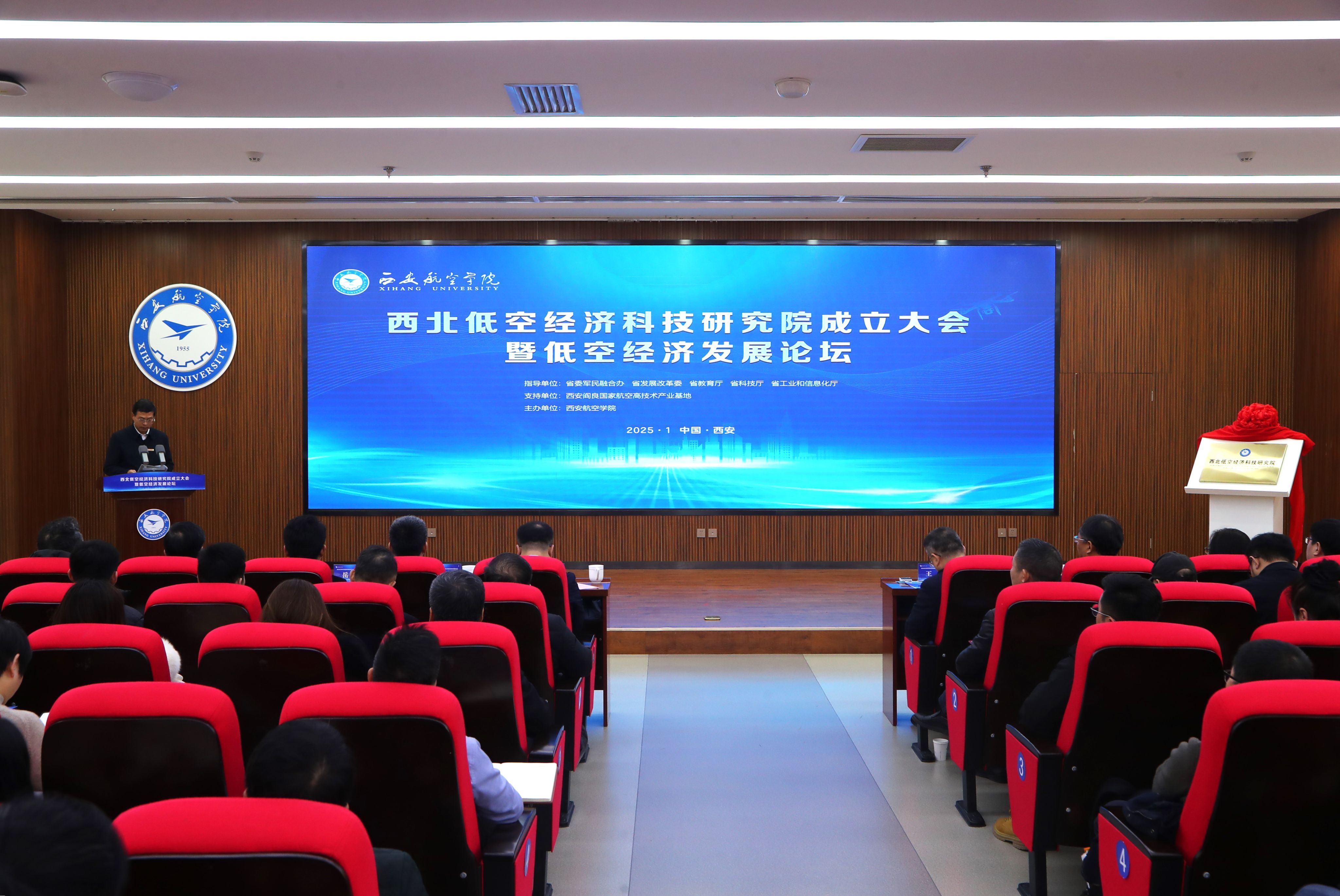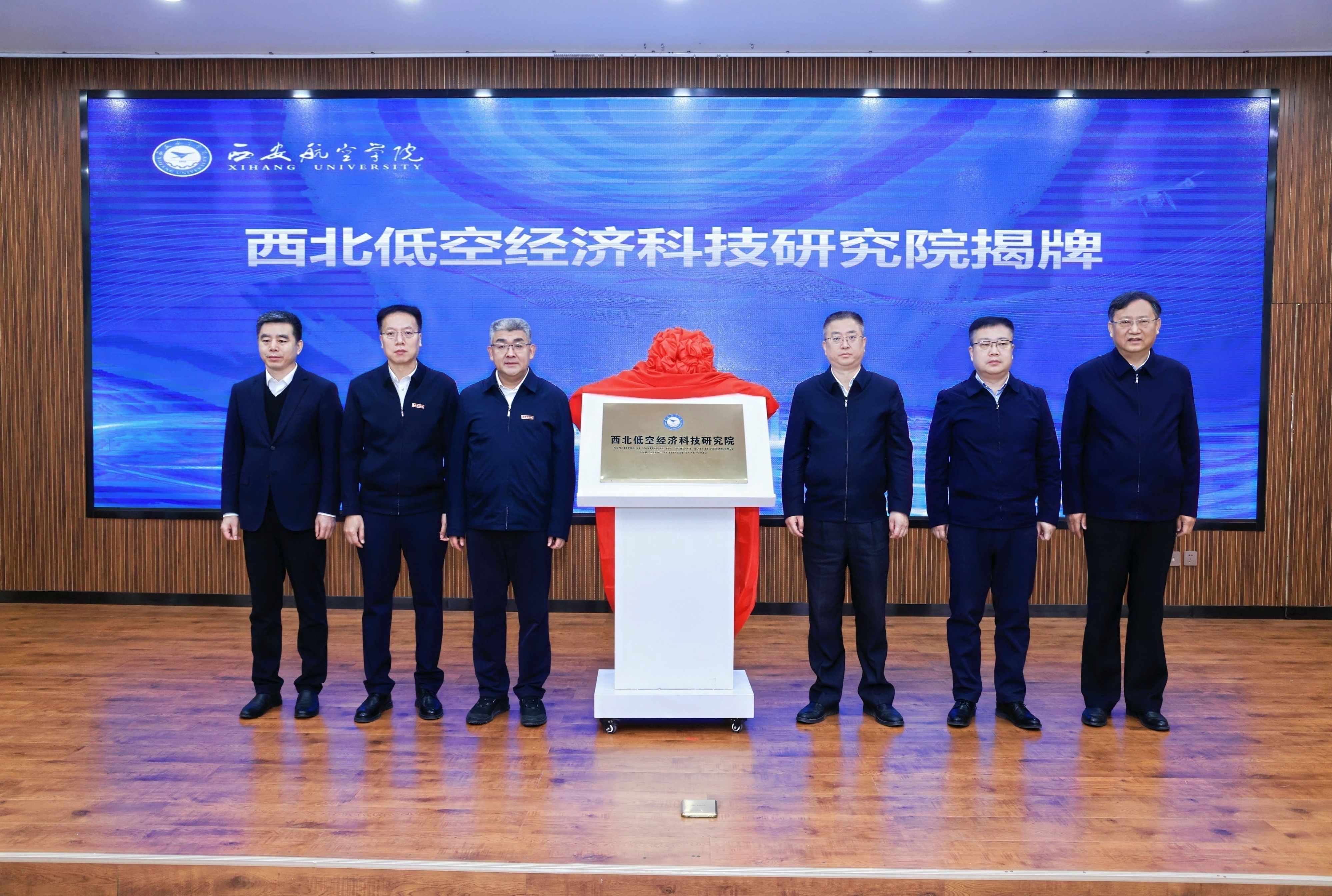 1月23日上午,西北低空经济科技研究院成立大会暨低空经济发展论坛在西安航空学院莲湖校区举行。省委军民融合办副主任王伟、省科技厅副厅长冀峰出席会议并讲话,省教育厅二级巡视员高巍、西安航空基地管委会副主任王建飞、省发展改革委及省工业和信息化厅等单位领导参加会议,陕西科技大学副校长陆赵情、西安科技大学副校长文虎、西安石油大学副校长张骁勇、西安工业大学副校长陈建等兄弟院校领导出席会议见证揭牌。会议由副校长宋文学主持。